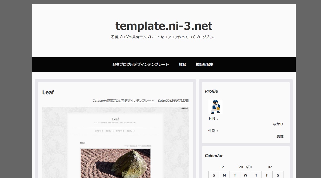 このブログは忍者ブログ用デザインテンプレート『Leaf』のチュートリアルです。